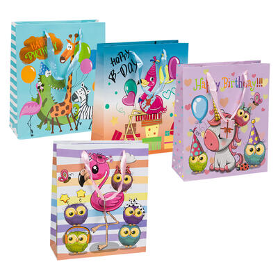 85127Flomo Special Occasion Gift Bags - 7.5x9" - Animal Print Design - 4 Assorted Colors - Recyclable